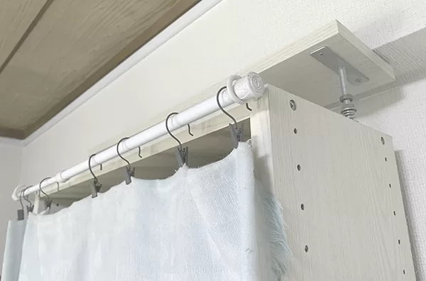 - 突っ張り棒にカーテンクリップをひっかけ、クリップ部分で布をはさみます。完成!